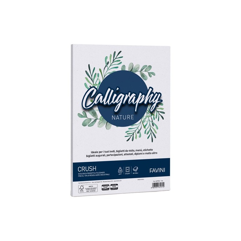 Cartoncino da 250 grammi ecologico prodotto e brevettato da Favini utilizzando fino al 15% di residui della lavorazione agro-industriale di olive, nocciole e mandorle. Superficie delicata al tatto. Ideale per ogni tipo di stampa e rilegatura. Formato 21x29,7cm.