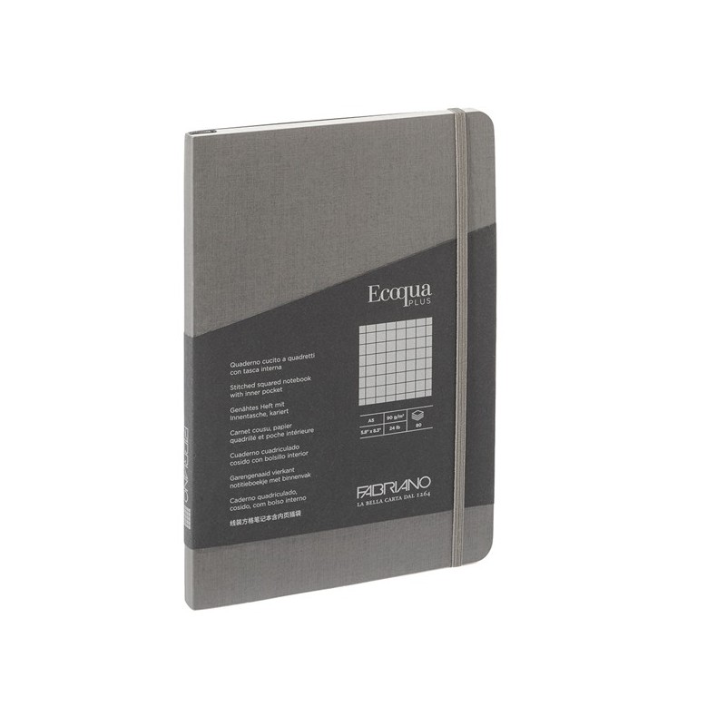 Taccuino EcoQua Plus - con elastico - rilegatura cucita - A5 - 5 mm - 80 fogli - artracite - Fabriano