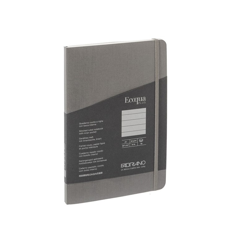 Taccuino EcoQua Plus - con elastico - rilegatura cucita - A5 - 5 mm - 80 fogli - righe - artracite - Fabriano