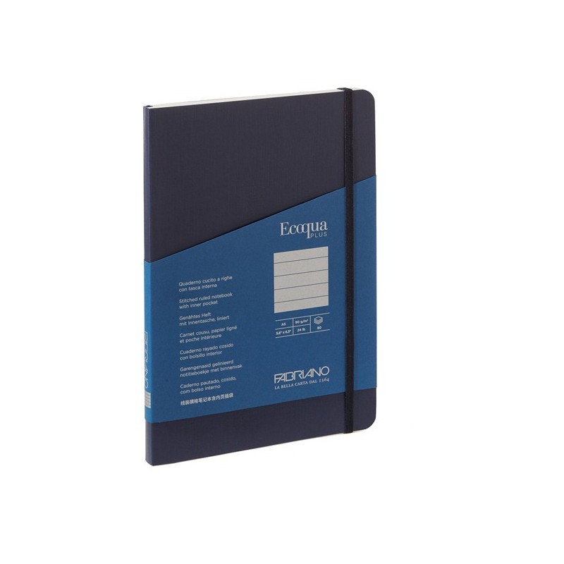 Taccuino EcoQua Plus - con elastico - rilegatura cucita - A5 - 5 mm - 80 fogli - righe - blu scuro - Fabriano