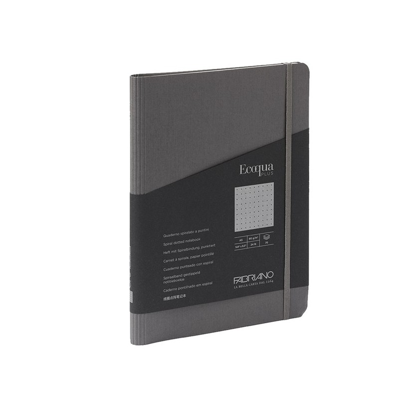 Elegante taccuino con rilegatura a spirale in argento opaco nascosta all'interno. Dotato di chiusura con elastico abbinato alla copertina. Rigido cartoncino sottoblocco che permette di scrivere facilmente fino all'ultima pagina. Copertina in cartoncino 640 g/m2. 70 fogli interni di carta 90 g/m2. Formato A5.