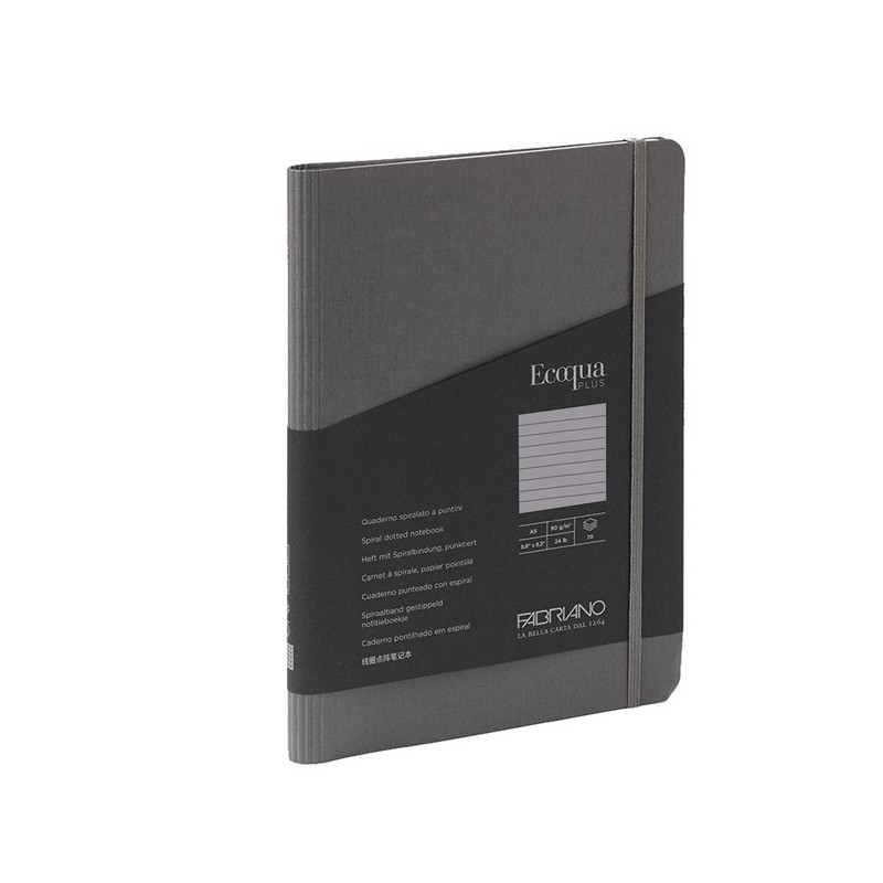 Taccuino EcoQua Plus - con elastico - spiralato - A5 - 70 fogli - righe - antracite - Fabriano