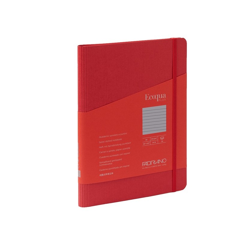 Taccuino EcoQua Plus - con elastico - spiralato - A5 - 70 fogli - righe - lampone - Fabriano