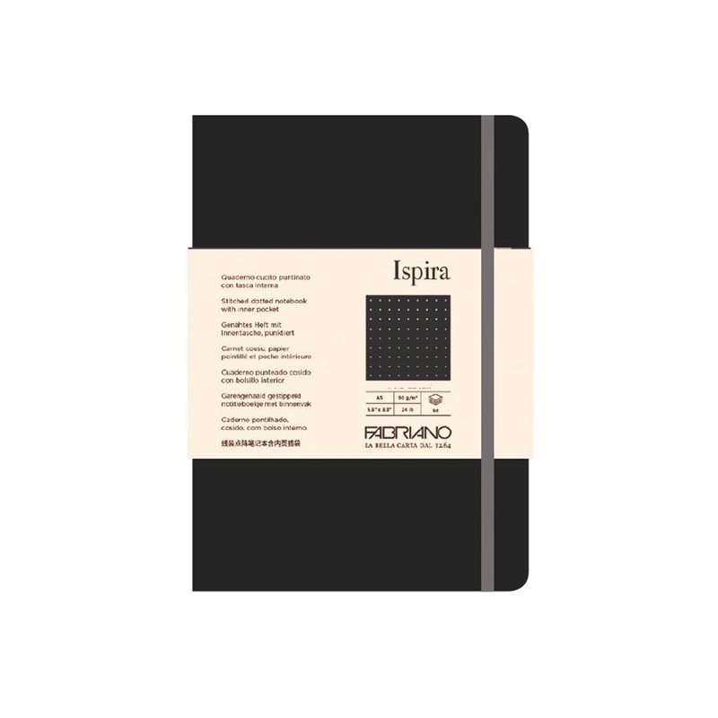 Taccuino Ispira - con elastico - copertina flessibile - A5 - 96 fogli - puntinato - nero - Fabriano