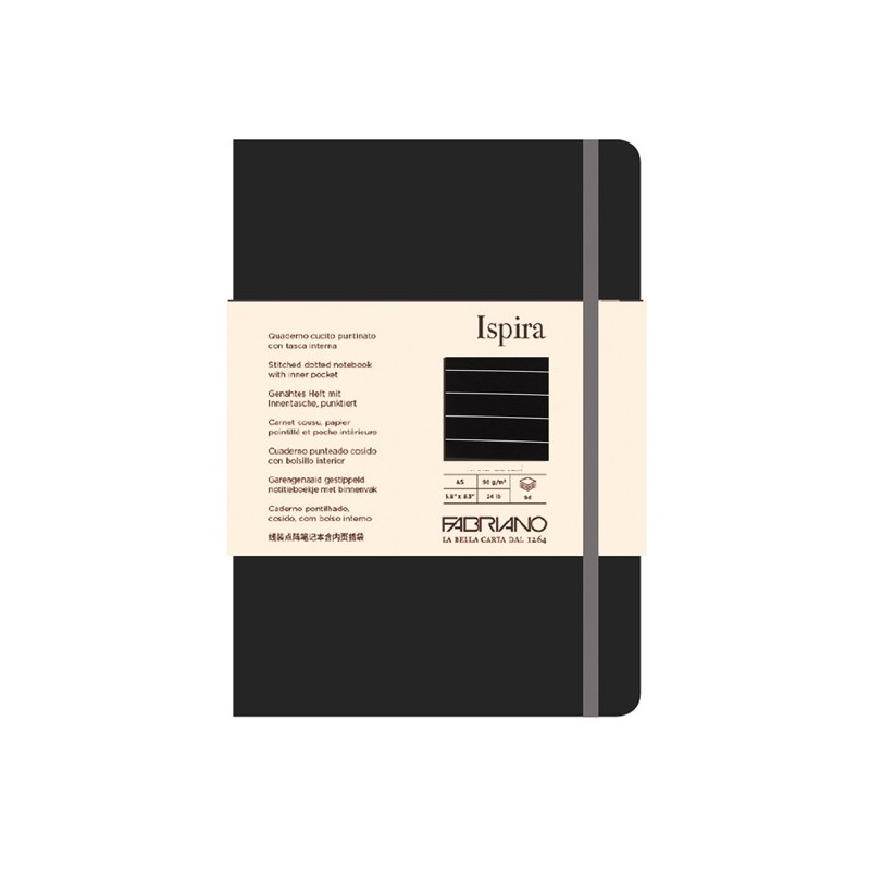Taccuino Ispira - con elastico - copertina flessibile - A5 - 96 fogli - righe - nero - Fabriano