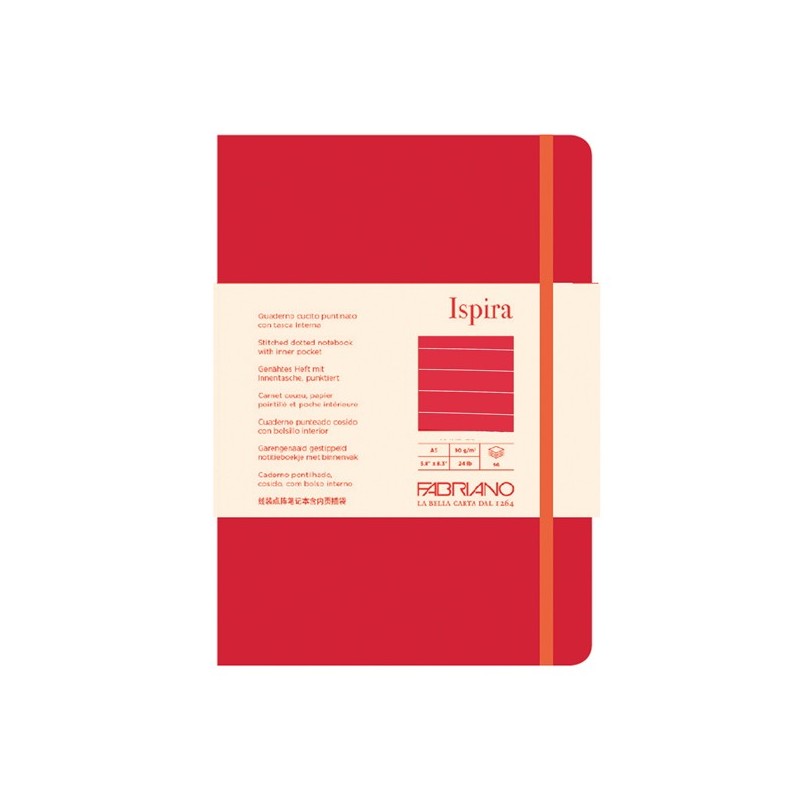 Taccuino Ispira - con elastico - copertina flessibile - A5 - 96 fogli - righe - rosso - Fabriano