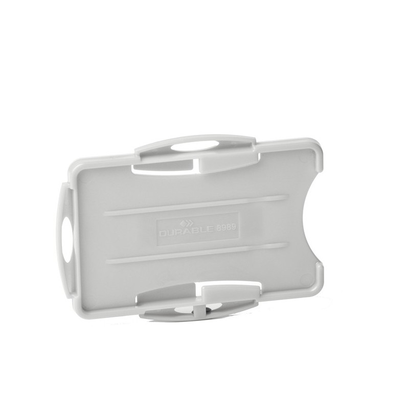 Portabadge ideale per 2 tessere. Realizzato in plastica riciclata certificata Blue Angel. Può essere utilizzato sia in formato orizzontale che verticale. Può essere utilizzato con catenella, cordoncino in tessuto o chiocciola yo-yo . Dimensioni interne: 54 x 87 mm.