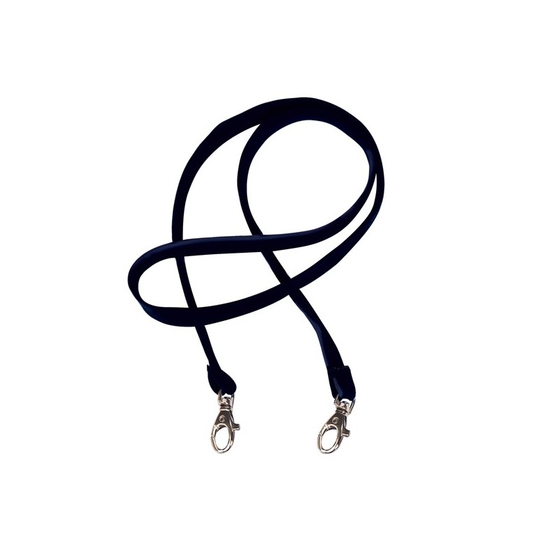 Cordoncini in raso colorato da 10 mm. Dotati di due moschettoni in metallo. Lunghezza totale dei cordoncini 85 cm.