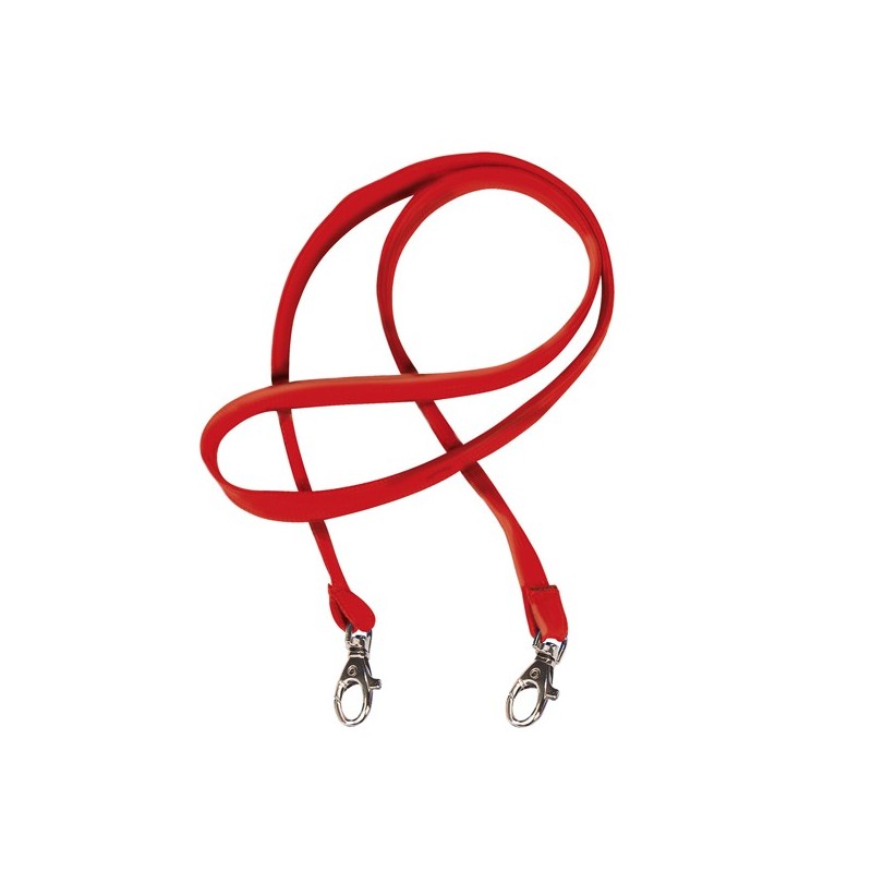 Cordoncini in raso colorato da 10 mm. Dotati di due moschettoni in metallo. Lunghezza totale dei cordoncini 85 cm.