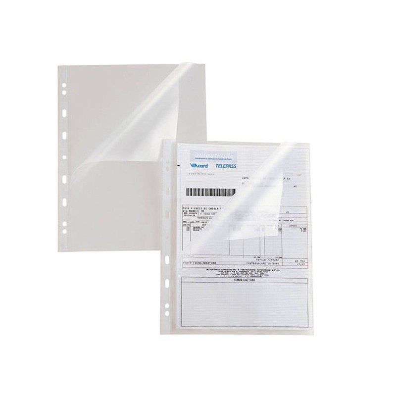 Buste con foratura universale rinforzata. Apertura laterale sul lato della foratura. In polipropilene a buccia d'arancia. Alto spessore.