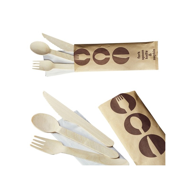 Tris cucchiaio coltello e forchetta in legno di betulla, non contiene vernici, additivi e sostanze sottoposte a restrizioni per il contatto alimentare. Tris con tovagliolo. Adatto a cibi caldi e freddi, solidi e liquidi.Biodegradabile naturalmente, smaltire nella raccolta umido-organico. Articolo monouso.