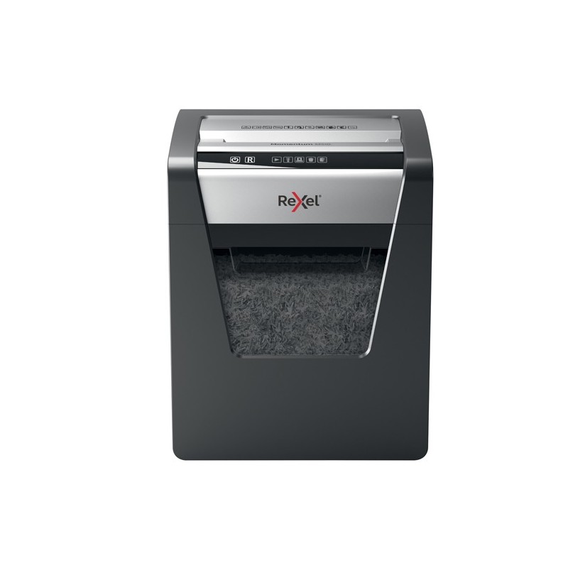 Il potere di distruggere di più! Rexel momentum M510 distrugge fino a 10 fogli per volta con un ciclo di lavoro continuo di 2 ore che lo rende ideale per il piccolo ufficio. Il distruggidocumenti M510 è dotato di tecnologia anti-inceppamento che garantisce la distruzione ininterrotta. Livello di sicurezza P5 con taglio in micro frammenti da 2x15 mm per una maggiore sicurezza ed una minore frequenza di svuotamento del cestino. Silenzioso, con pulsanti di controllo a sfioramento semplici e intuitivi per un facile utilizzo e una generosa capacità del cestino da 23 litri (250 fogli A4)