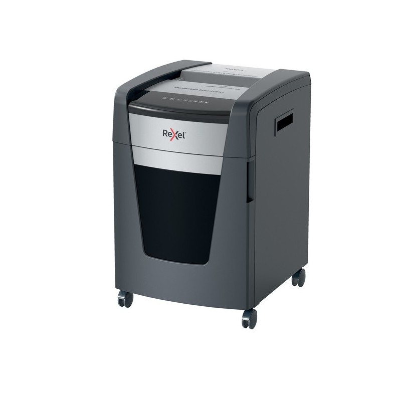 I distruggidocumenti Rexel Momentum Extra con tecnologia anti-inceppamento sono ideali per distruggere documenti riservati in ufficio. Il distruggidocumenti XP514+ distrugge fino a 14 fogli di carta A4 (80 gr/mq) in una sola volta attraverso la fessura di alimentazione manuale in micro frammenti (2x15mm). La tecnologia di rilevamento attivo misura il numero di fogli alimentati in tempo reale per evitare gli inceppamenti e gli errori di alimentazione della carta; il LED rosso sul pannello di controllo indica la presenza di troppi fogli. Questo distruggidocumenti non entra in funzione finché il numero di fogli non viene ridotto al di sotto o alla capacità massima di fogli. Questo distruggidocumenti con taglio a frammenti è progettato per un uso da moderato a intensivo grazie all’elevata capacità di fogli, al capiente cestino da 60L e al ciclo di lavoro continuo. Non c'è bisogno di alimentare manualmente la carta, o di rimuovere prima graffette e fermagli; questo distruggidocumenti Rexel distrugge anche CD, DVD e carte di credito in modo sicuro attraverso uno slot di alimentazione separato.