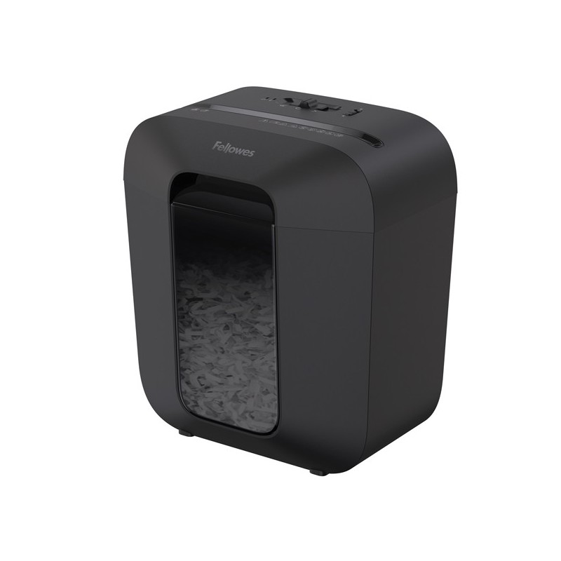 Distruggidocumenti per uso personale. Comodo cestino con testata sollevabile. Distrugge anche punti metallici graffette e carte di credito
