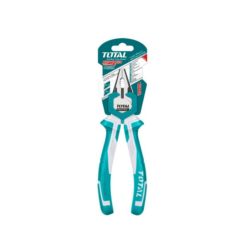 Pinza combinata ad alta leva. Misura: 180mm; Materiale: Cr-V; Finitura nera; Impugnatura in TPR.