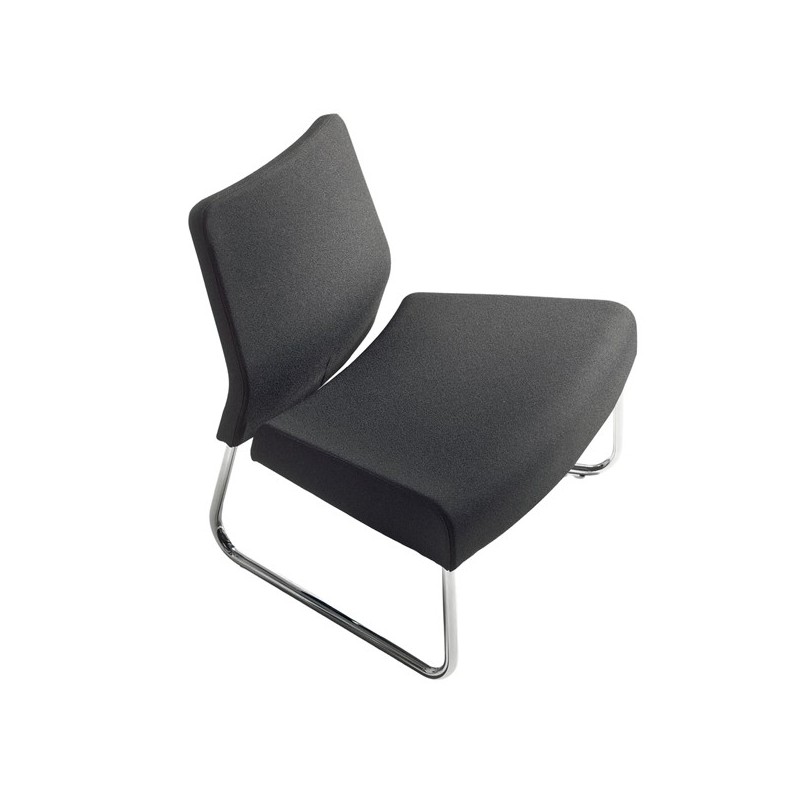 Poltroncina curva esterna collettività/attesa. Rivestimento di tessuto "PLUS - Eco leather" idrorepellente, facile da pulire, senza flatati e flame retardant. Alt.tot: 77cm; Prof.tot: 64cm; Alt.schienale: 34cm; Largh.schienale: 49cm; Largh.sedile: 60cm; Prof.sedile: 50cm; Alt.sedile: 43cm.