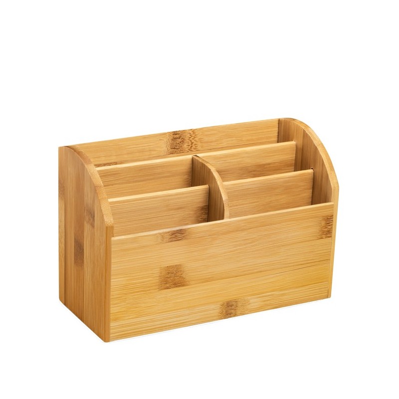 5 scomparti per riporre le tue penne, accessori, tablet e smartphone. Una vernice protettiva rende il prodotto impermeabile. Non contiene chiodi o viti. Materiale: 100% bambù naturale. Dimensioni : 22,7 x 9,7 x h 15 cm"