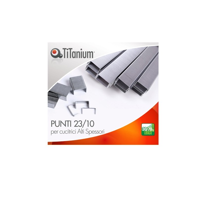 Punti metallici per alti spessori di alta qualità in acciaio zinco-cromato. Cucitrice utilizzabile: idonee per passo 23 Capacità di cucitura: 30-70fg Scatola da 1000 punti