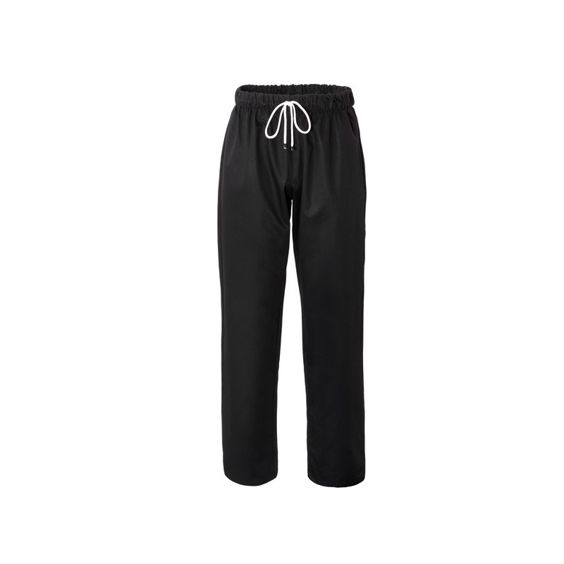 Pantalone da cuoco 65% poliestere, 35% cotone. Taglie disponibili: da XS - 5XL. Slim Fit. Dettagli: 2 tasche, 1 tasca sul retro, Elastico e coulisse