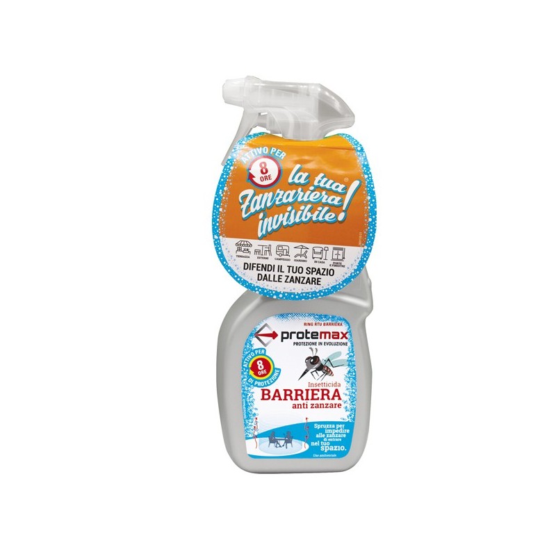 Insetticida con azione barriera. Una volta spruzzato nell’ambiente il prodotto evapora formando un muro simile ad una barriera “zanzariera invisibile” che protegge chi è all’interno per circa 8 ore. Si consiglia di spruzzare circa 10-20 minuti prima di soggiornare per permettere l’attivazione della zanzariera. Indicato per: aree domestiche esterne (terrazza, veranda, patio,gazebo, ecc.) e perimetrali (davanzali, finestre, porte, ecc.). Può essere spruzzato anche sulla vegetazione. Per interni domestici. Modalità d’uso: agitare il flacone e spruzzare intorno all’area da