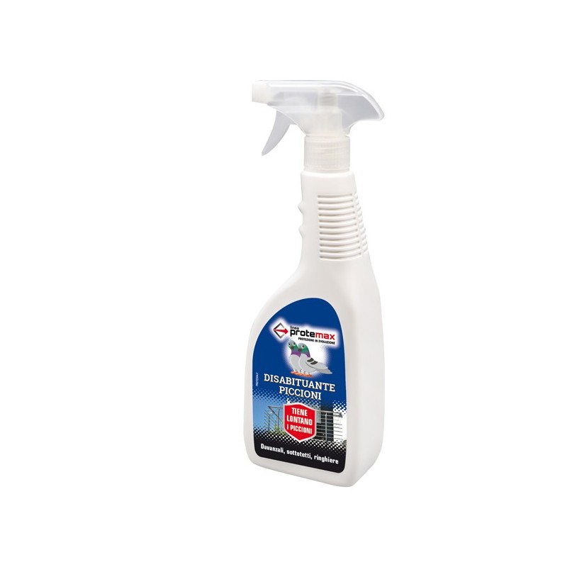 Prodotto in spray no gas pronto all’uso appositamente studiato per evitare che piccioni, colombi e altri volatili sporchino con le proprie deiezioni in luoghi indesiderati.Indicato per: davanzali, balconi, terrazzi, cornicioni, tetti ed altre aree esterne. Modalita’ d’uso: 1. Pulire, se possibile, la zona da trattare da eventuali residui lasciati dai volatili.2. AGITARE PRIMA E DURANTE L’USO 3. Spruzzare abbondantemente il prodotto da una distanza di 20-30 cm 4. Ripetere il trattamento secondo necessità.