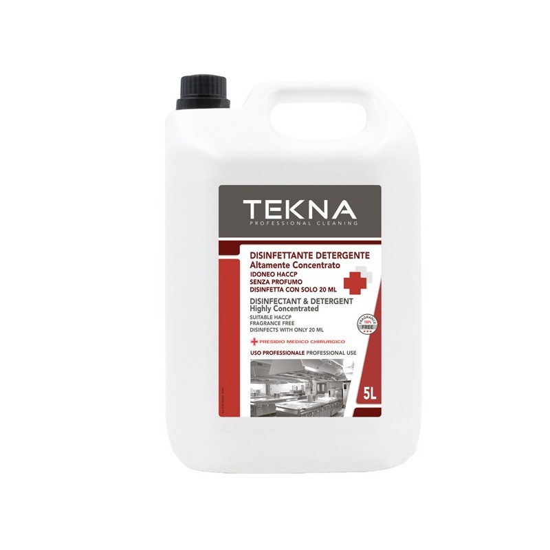 Disinfettante detergente altamente concentrato non profumato. Certificato Presidio medico Chirurgico e Haccp. Indicato per il trattamento di oggetti e superfici comprese le attrezzature del settore alimentare. Esplica un'azione fungicida e battericida negli ambienti di lavoro di : industrie, industrie alimentari, uffici, imprese di pulizia, ecc. è inoltre particolarmente indicato per disinfettare e contemporaneamente detergere superfici e attrezzature del settore agro alimentare, alberghiero e della ristorazione.