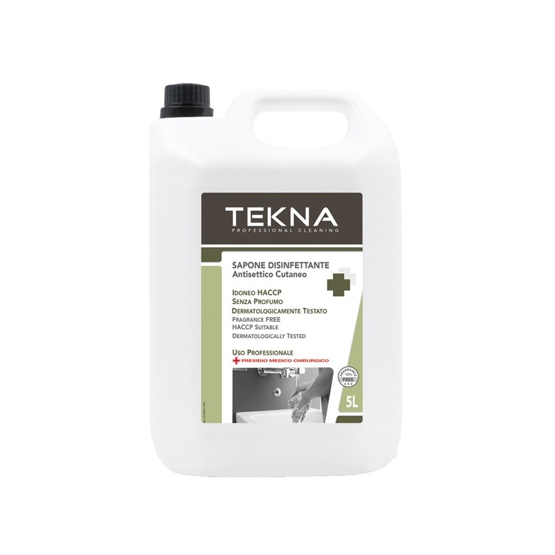 Sapone disinfettante, antisettico liquido cutaneo dermatologicamente testato, non profumato. Certificato Presidio medico Chirurgico e Haccp. Indicato anche per lavaggi frequenti. Svolge un'efficace azione disinfettante ed elimina la carica batterica presente sulla cute senza alterarne l'equilibrio fisiologico. Idoneo per il settore alimentare.