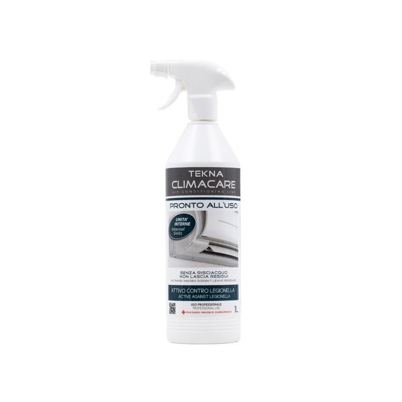 Detergente disinfettante pronto all’uso. Presidio Medico Chirurgico efficace sui batteri Gram-positivi e Gram- negativi (compresa Legionella), funghi e muffe. L’erogatore è a doppia funzione: per rendere più agevole l’uso del prodotto è possibile scegliere la funzione schiuma piuttosto che quella liquida in base alla zona da disinfettare. Questo prodotto non richiede risciacquo, non lascia residui o aloni ed ha una piacevole e delicata fragranza. E’ possibile utilizzarlo su tutte le parti interne ed esterne dello split/pompa di calore. Flacone da 1000 ml con trigger –