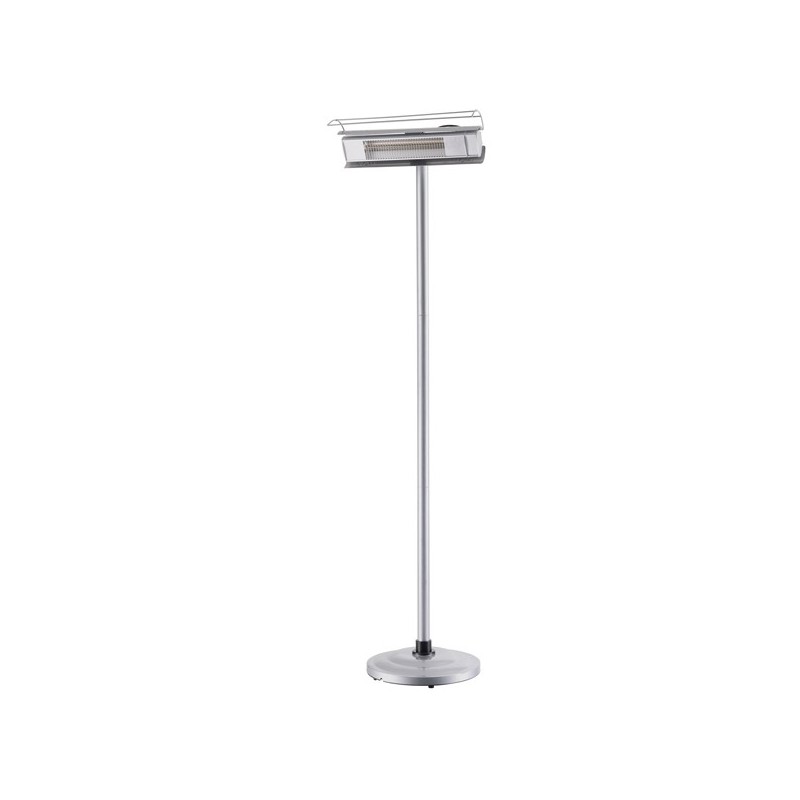stufa a infrarossi da esterno/interno 1500W. Base poco ingombrante, Adatto a bar e locali ristorazione. Installabile su piedistallo o a parete. Grado di protezione: IP65 (resistente all’acqua). Elemento radiante: lampada ad infrarossi rivestita oro. Alimentazione: 220-240V ~ 50/60 Hz. Potenza effettiva: 1500 W. Superficie riscaldabile: 20mq. Dotazioni: piedistallo a base tonda (poco ingombrante), protezione anti-contatto accidentale con materiali infiammabili come tende, tessuti, ecc. resistenza di ricambio inclusa, cavo di alimentazione 2,2 metri H05RN-F 3G1.0, spina schuko. Materiale: stufa in acciaio inox, piedistallo in acciaio. Colore: argento. Dimensioni: altezza 2,10 m circa / 45 x 54 x 210 cm, diametro asta 48 mm. Peso: 15,8 Kg