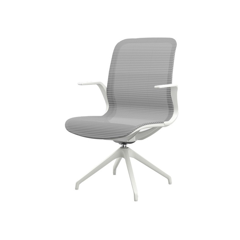 Poltrona direzionale girevole con meccanismo oscillante - base 4 gambe nylon. Rivestimento seduta in rete bianca. Braccioli inclusi (non rimovibili). Alt.tot.: 95cm; Prof.tot.: 66cm; Alt.schienale: 51cm; Larg.schienale: 46cm; Larg.seduta: 49cm; Prof.Sedile: 46cm; Altezza sedile: 49cm.