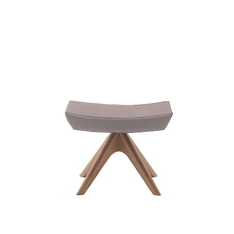 Sgabello poggiapiedi su su basamento girevole in legno di frassino verniciato. Rivestimento in tessuto "PLUS - Eco Leather" idrorepellente, facile da pulire, senza flatati e flame retardant. Alt.tot.: 43cm; Prof.tot.: 48cm; Larg.tot.: 58cm. Abbinabile con la seduta cod. 96094.