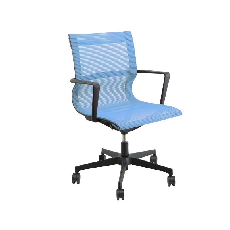Poltrona direzionale girevole con elevazione a gas - meccanismo oscillante libero - schienale fisso in rete. Braccioli inclusi (non rimovibili). Alt.tot.: 91-99cm; Prof.tot.: 68cm; Alt.schienale: 52cm; Larg.schienale: 50cm; Larg.seduta: 50cm; Prof.Sedile: 49cm; Altezza sedile: 44-52cm.