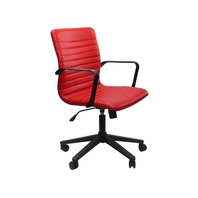 Poltrona direzionale girevole - sedile e schienale in multistrati di legno - elevazione a gas - meccanismo oscillante con blocchi. Rivestimento seduta in tessuto "PLUS - Eco Leather" idrorepellente, facile da pulire, senza flatati e flame retardant. Braccioli inclusi (non rimovibili). Alt.tot.: 92-102cm; Prof.tot.: 70cm; Alt.schienale: 47cm; Larg.schienale: 50cm; Larg.seduta: 50cm; Prof.Sedile: 48cm; Altezza sedile: 44-54cm.