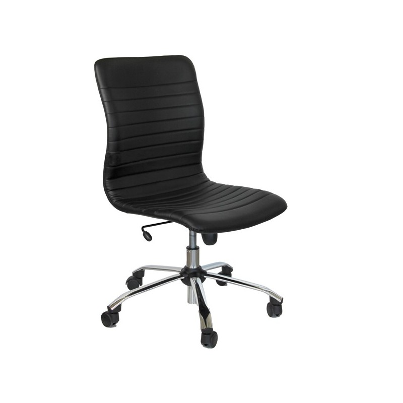 Seduta direzionale visitatore - sedile e schienale in multistrati di legno - base in acciaio cromato. Rivestimento seduta in tessuto "PLUS - Eco Leather" idrorepellente, facile da pulire, senza flatati e flame retardant. Senza braccioli. Alt.tot.: 92-102cm; Prof.tot.: 70cm; Alt.schienale: 47cm; Larg.schienale: 50cm; Larg.seduta: 50cm; Prof.Sedile: 48cm; Altezza sedile: 44-54cm.