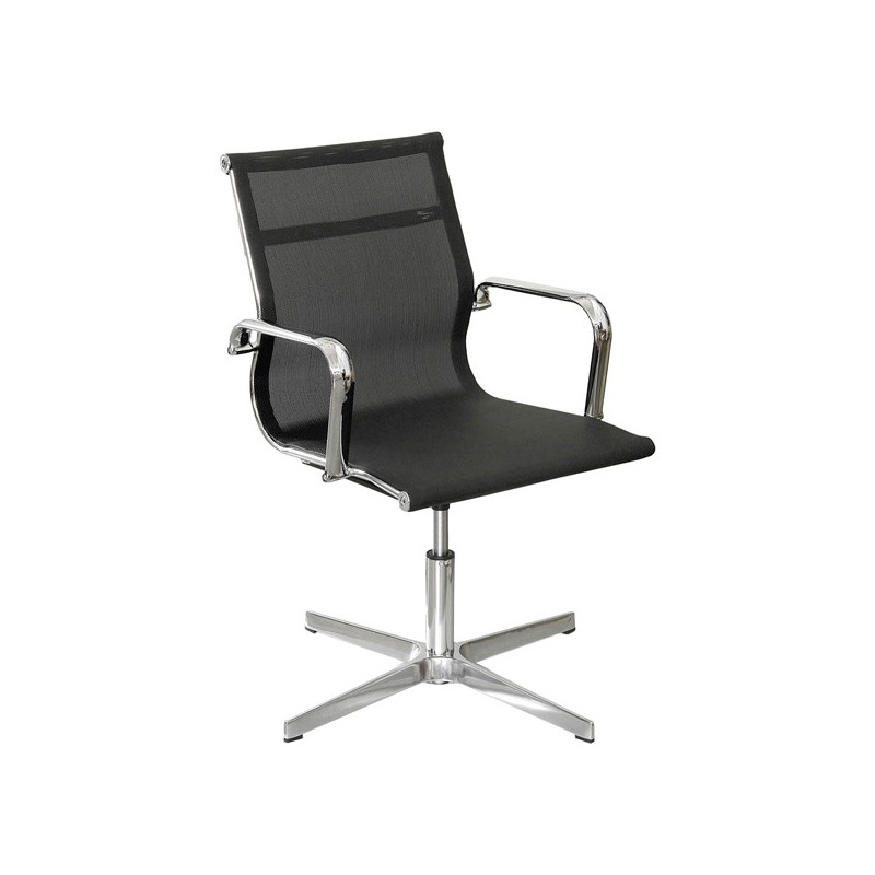 Poltrona direzionale girevole con elevazione a gas. Completa di braccioli fissi. Rivestimento seduta in rete di colore nero. Braccioli inclusi (non rimovibili). Alt.tot.: 94-104cm; Prof.tot.: 66cm; Alt.schienale: 53cm; Larg.schienale: 46cm; Larg.seduta: 48cm; Prof.Sedile: 45cm.