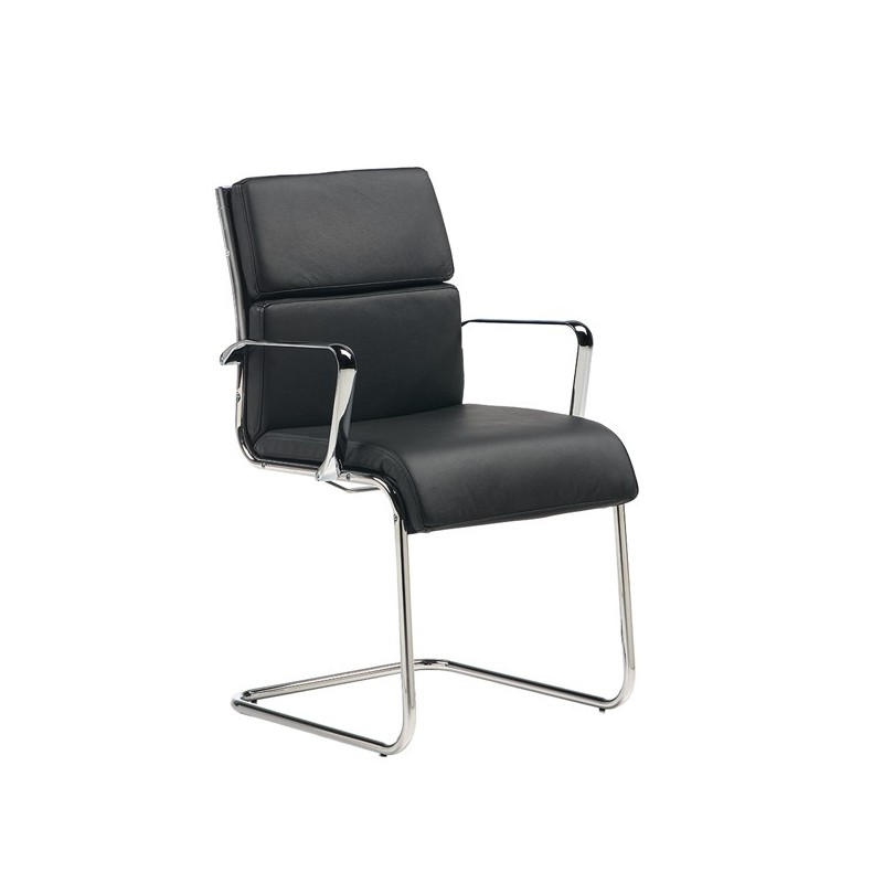 Seduta visitatore in acciaio cromato; Braccioli inclusi (non rimovibili). Rivestimento seduta in tessuto "PLUS - Eco Leather" idrorepellente, facile da pulire, senza flatati e flame retardant. Alt.tot.: 89cm; Prof.tot.: 60cm; Alt.schienale: 41cm; Larg.schienale: 48cm; Larg.seduta: 50cm; Prof.Sedile: 50cm; Alt. sedile: 46cm.