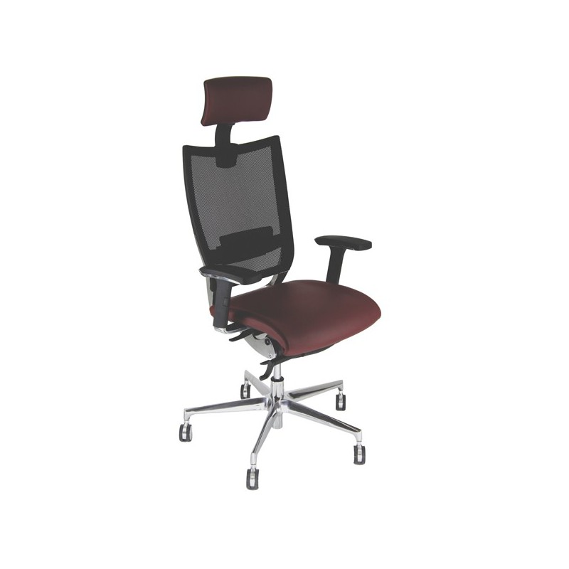 contatto permanente dotata di supporto lombare regolabile - struttura in alluminio pressofuso - sedile con traslatore; Rivestimento seduta in tessuto "PLUS - Eco Leather" idrorepellente, facile da pulire, senza flatati e flame retardant. Completa di braccioli regolabili e poggiatesta. Alt.tot.: 118-129cm; Prof.tot.: 68cm; Alt.schienale: 72cm; Larg.schienale: 45cm; Larg.seduta: 49cm; Prof.Sedile: 48cm; Altezza sedile: 42-53cm.