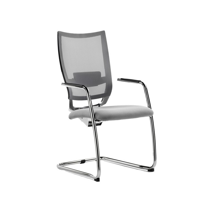 Seduta interlocutore linea ergonomica - dotata di supporto lombare - struttura in acciaio cromato e alluminio pressofuso - rete grigia. Rivestimento seduta in tessuto "FASHION - Salò" 100% poliestere e certificazione infiammabilità 1IM UNI 9175 EN 1021. Braccioli inclusi (non rimovibili). Alt.tot.: 96cm; Prof.tot.: 65cm; Alt.schienale: 52cm; Larg.schienale: 45cm; Larg.seduta: 49cm; Prof.Sedile: 48cm; Altezza sedile: 45cm.