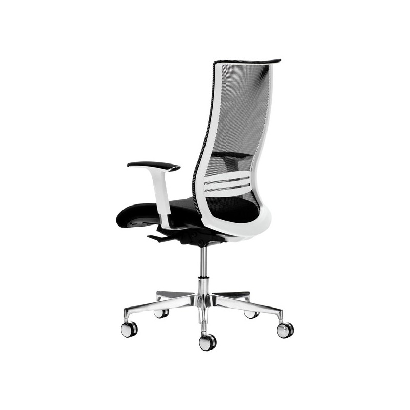 Seduta semidirezionale ergonomica girevole - elevazione a gas - meccanismo synchro autopesante - meccanismo a contatto permanente - dotata di supporto lombare regolabile - traslatore sedile; Rivestimento seduta in tessuto "FASHION - Chili" 75% poliestere ricilato e certificazione di infiammabilità 1IM UNI 9175 EN 1021. Completa di braccioli regolabili. Alt.tot.: 117-127cm; Prof.tot.: 68cm; Alt.schienale: 72cm; Larg.schienale: 45cm; Larg.seduta: 48cm; Prof.Sedile: 48cm; Altezza sedile: 42-53cm.
