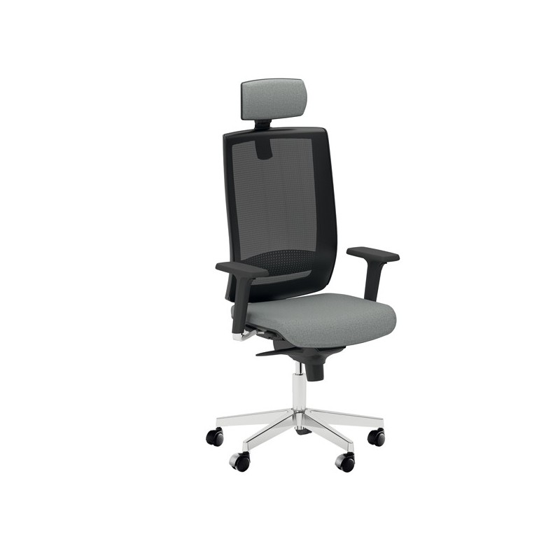 Seduta semidirezionale ergonomica girevole - elevazione a gas - meccanismo synchro con sedile traslabile - meccanismo anti shock -meccanismo a contatto permanente - supporto lombare regolabile. Rivestimento seduta in tessuto SUPER - King L 100% TREVIRA reazione al fuoco classe 1. Completa di braccioli regolabili e poggiatesta. Alt.tot.: 126-136cm; Prof.tot.: 68cm; Alt.schienale: 62cm; Larg.schienale: 45cm; Larg.seduta: 50cm; Prof.Sedile: 46cm; Alt. sedile: 42-54cm.