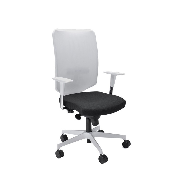 Seduta ergonomica semidirezionale con elevazione a gas - meccanismo Syncro - meccanismo anti shock - meccanismo a contatto permanente - dotata di supporto lombare regolabile. Rivestimento seduta in tessuto "PLUS - Eco leather" idrorepellente, facile da pulire, senza flatati e flame retardant. Completa di braccioli regolabili. Alt.tot.: 95-107cm; Prof.tot.: 68cm; Alt.schienale: 45cm; Larg.schienale: 47cm; Larg.seduta: 48cm; Prof.Sedile: 48cm; Alt. sedile: 40-52cm.