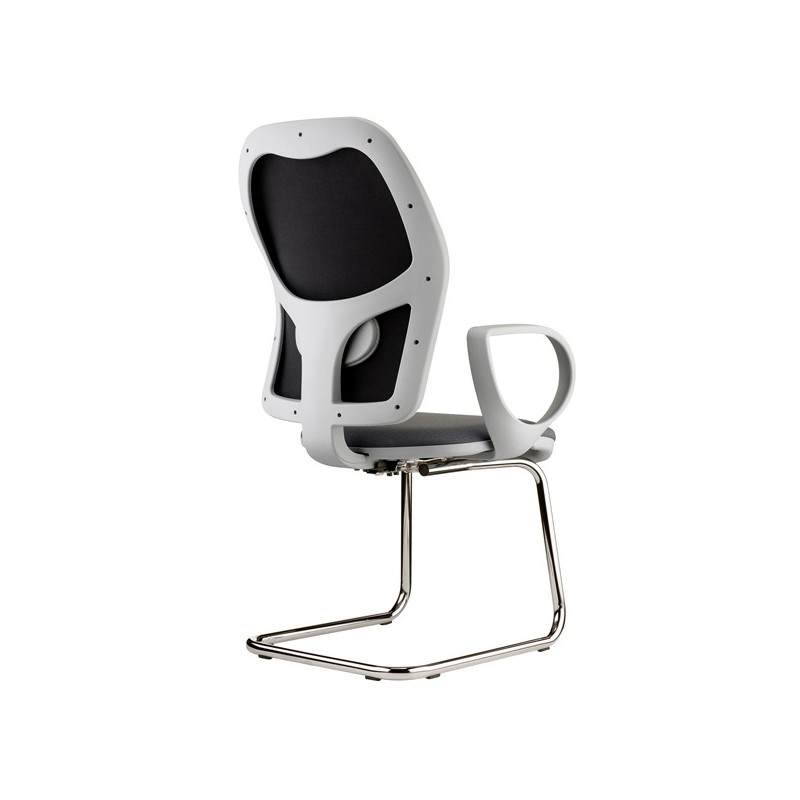 Seduta operativa interlocutore su slitta; supporto lombare regolabile. Rivestimento seduta in tessuto "ECO- Eco" 100% polipropilene. Completa di braccioli fissi. Alt.tot.: 98cm; Prof.tot.: 68cm; Alt.schienale: 60cm; Larg.schienale: 48cm; Larg.seduta: 51cm; Prof.Sedile: 46cm; Alt. sedile: 42cm.