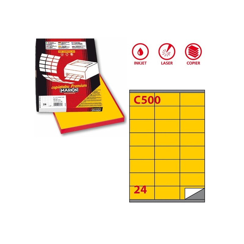 Scatola da 100 fogli di etichette in carta adesiva permanente in formato 21x29,7cm adatti per fotocopiatrici, stampanti laser, inkjet.
