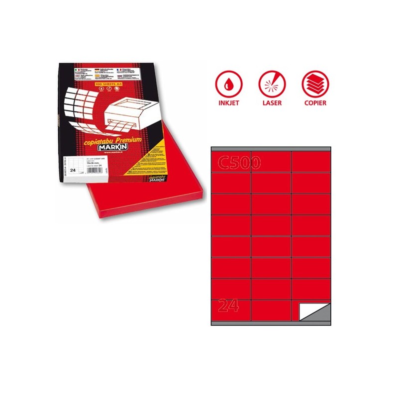 Scatola da 100 fogli di etichette in carta adesiva permanente in formato 21x29,7cm adatti per fotocopiatrici, stampanti laser, inkjet.