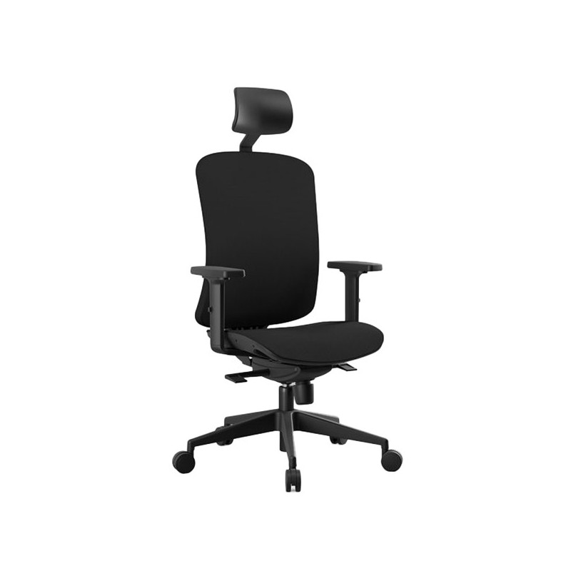 Sedia girevole su ruote con sedile in rete portante e schienale in rete nera, elevazione a gas. Supporto lombare regolabile, meccanismo syncro tra sedile e schienale, a contatto permanente. Schienale con ritorno controllato con 4 blocchi antishock. Sedile dotato di traslatore (avanti e indietro). Completa di braccioli regolabili e poggiatesta. Alt.tot: 120-132cm; Prof.tot: 68cm; Alt.schienale: 60cm; Largh.schienale:47cm; Largh.sedile: 48cm; Prof.sedile: 46cm; Alt.sedile: 40-52cm.
