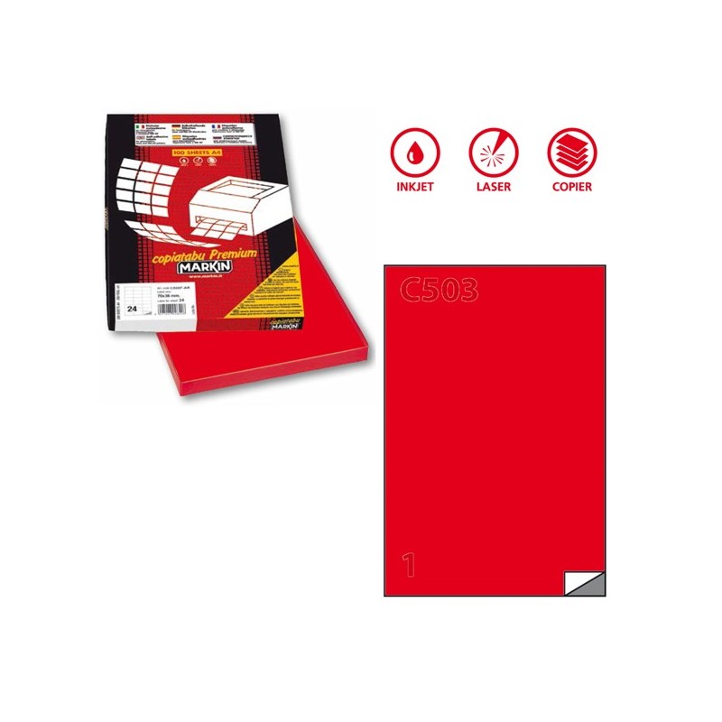 Scatola da 100 fogli di etichette in carta adesiva permanente in formato 21x29,7cm adatti per fotocopiatrici, stampanti laser, inkjet.
