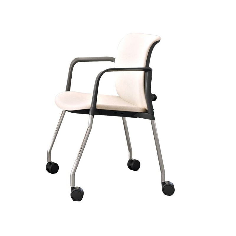 Seduta visitatore100% polipropilene con 4 gambe struttura cromata su ruote. Completa di braccioli. Rivestimento in tessuto "PLUS - Bondai" 100% poliestere no flame e certificazioni di infiammabilità 1.IM UNI 9175. Alt. tot: 82cm; Prof.tot: 52cm; Alt.schienale: 40cm; Largh.schienale: 42cm; Largh. sedile: 45cm; Prof.sedile: 47cm; Alt.sedile: 46cm. Certificazioni: EN 16139: 2013.
