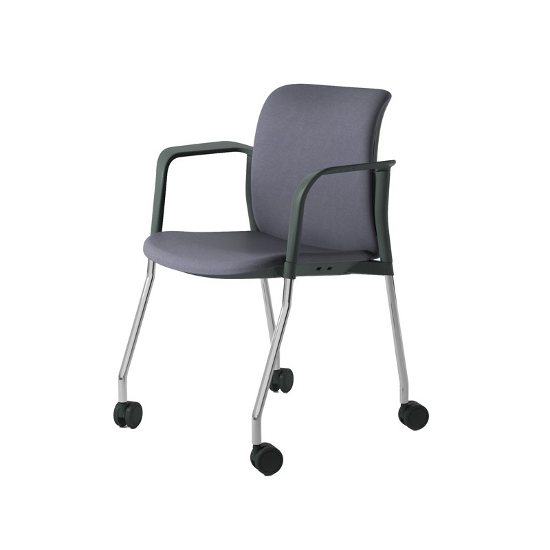 Seduta visitatore100% polipropilene con 4 gambe struttura cromata su ruote. Completa di braccioli. Rivestimento in tessuto "PLUS - Bondai" 100% poliestere no flame e certificazioni di infiammabilità 1.IM UNI 9175. Alt. tot: 82cm; Prof.tot: 52cm; Alt.schienale: 40cm; Largh.schienale: 42cm; Largh. sedile: 45cm; Prof.sedile: 47cm; Alt.sedile: 46cm. Certificazioni: EN 16139: 2013.