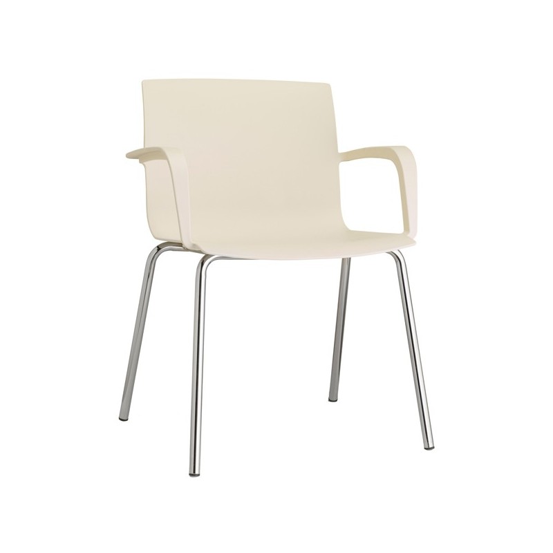 Seduta visitatore 100% polipropilene con 4 gambe struttura cromata - non impilabile - completa di braccioli. Alt. tot: 79cm; Prof.tot: 49cm; Alt.schienale: 37cm; Largh.schienale: 48cm; Largh. sedile: 48cm; Prof.sedile: 50cm; Alt.sedile: 44cm.