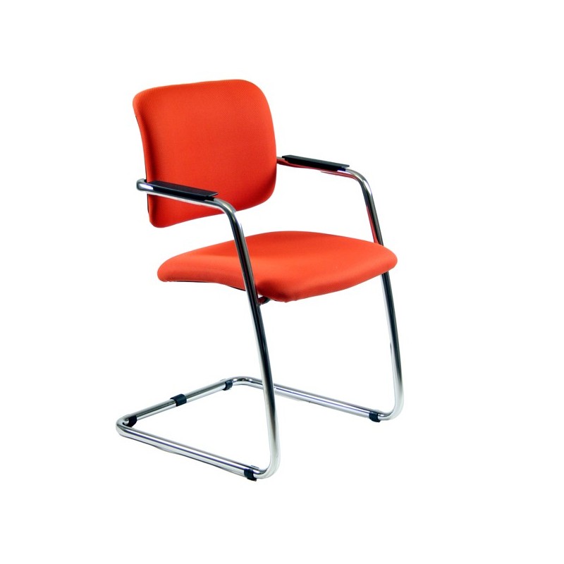 Seduta visitatore con slitta tubolare cromata impilabile - completa di braccioli. Rivestimento in tessuto "PLUS - Bondai" 100% poliestere no flame e certificazioni di infiammabilità 1.IM UNI 9175. Alt. tot: 83cm; Prof.tot: 59cm; Alt.schienale: 34cm; Largh.schienale: 50cm; Largh. sedile: 50cm; Prof.sedile: 45cm; Alt.sedile: 45cm.
